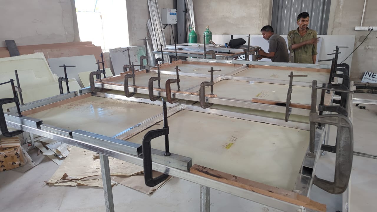 They studied compression molding used for electrical insulation panels and pultruded beams for cooling towers.