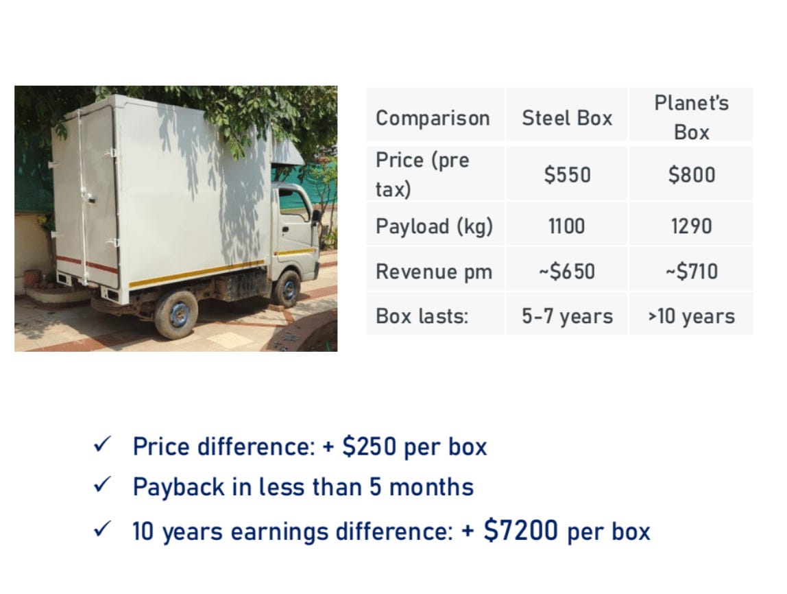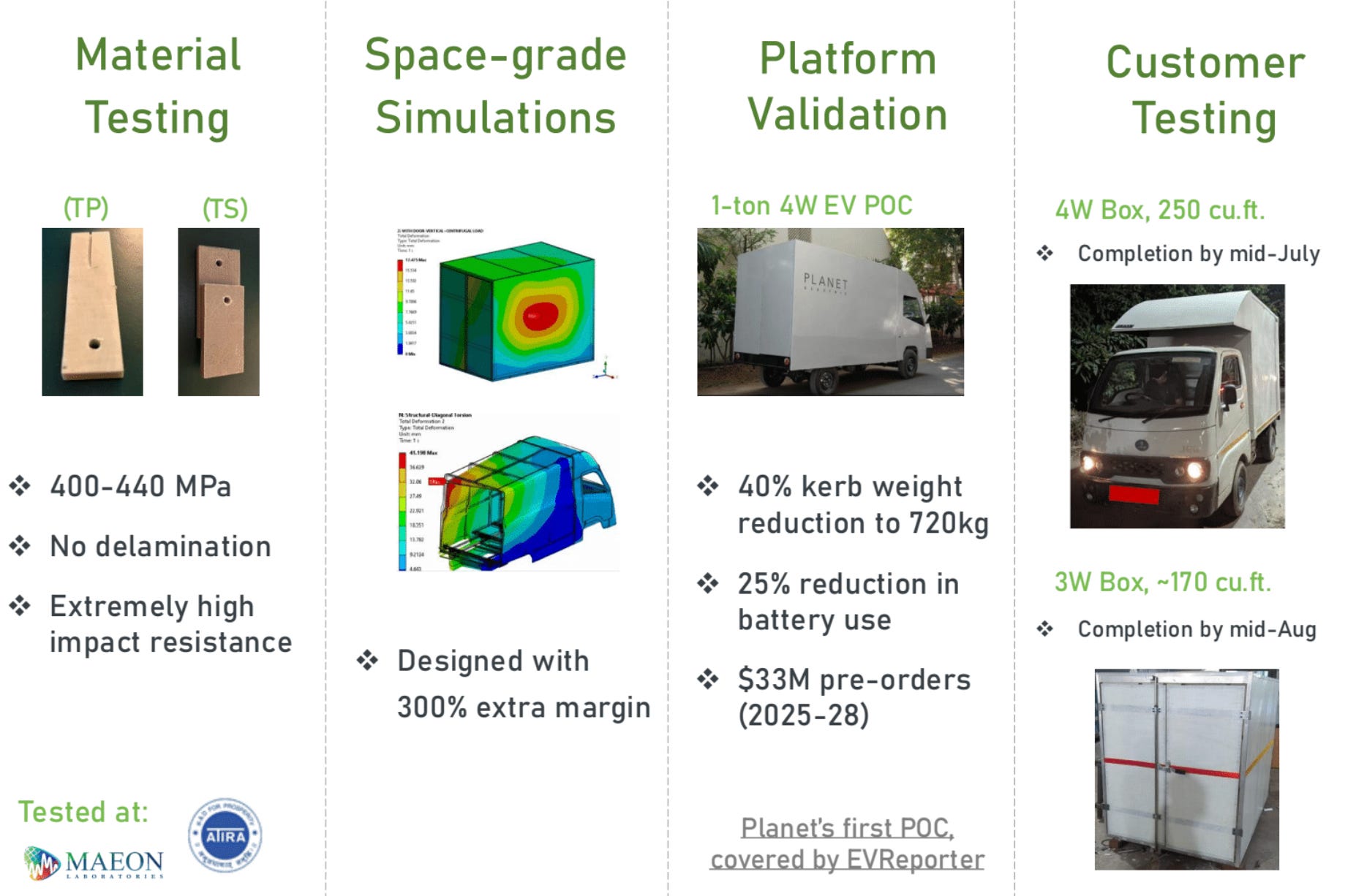 The company has already built functional prototypes for its cargo boxes and signed MOUs worth $7 million specifically for cargo boxes made with Planet’s Silica Composite, and attracted pre-orders from 33 customers spanning logistics giants, OEMs, and new mobility companies.
