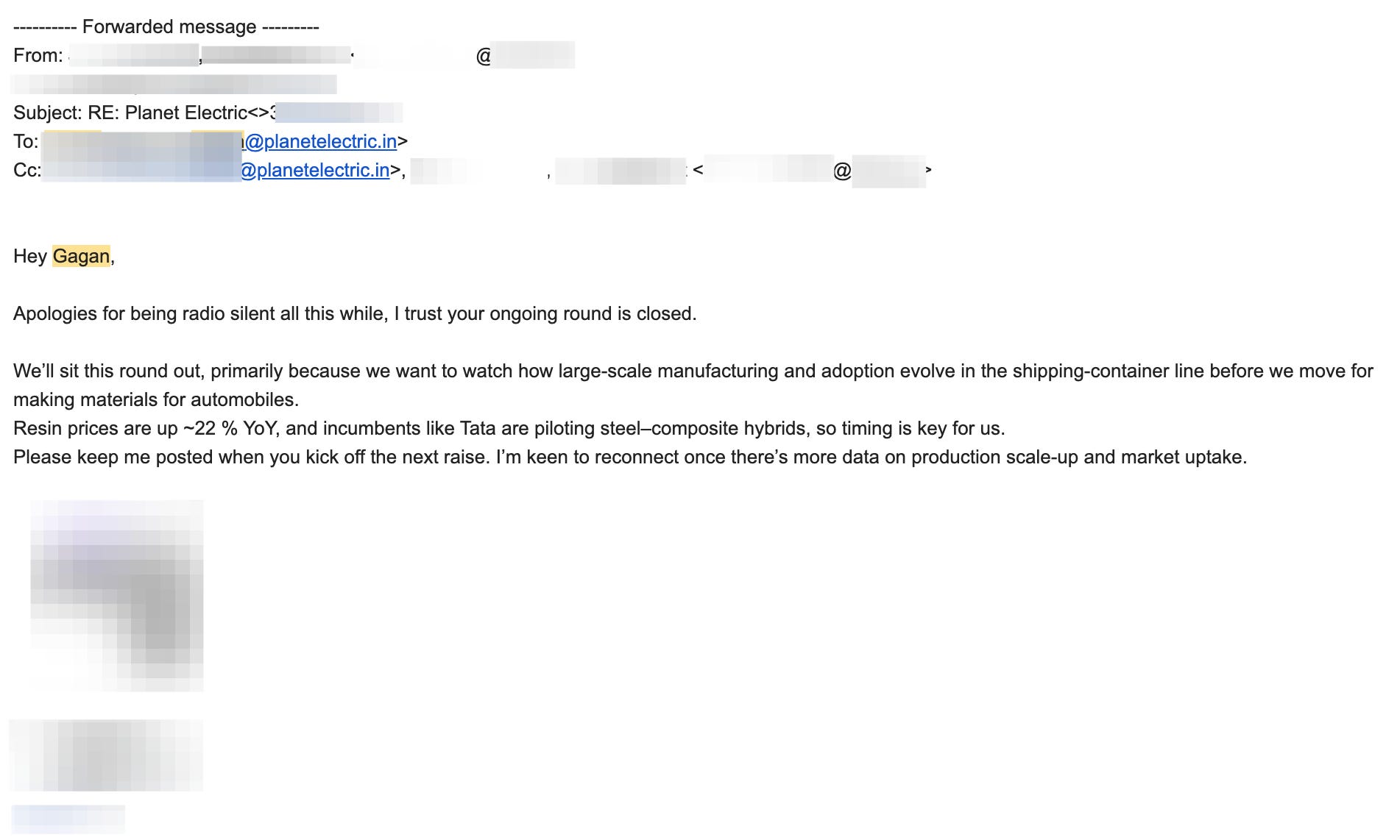 The curse of being a pure technology founder in India is that you have to grow despite the system and not because of it. Case in point is the following email from a respectable fund in India, an offshoot of a well-known publicly listed financial services outfit.