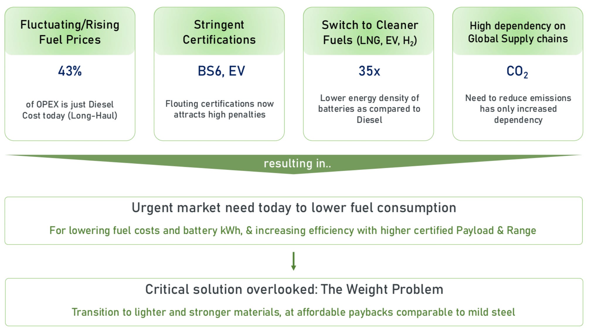 "We're talking about reducing vehicle weight by 40%, cutting battery consumption by 25%, and enabling 7% diesel savings per vehicle per month."