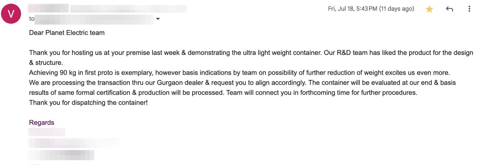 "He said, 'My vehicles have poor gradeability, they take too much battery.' We worked for 3 months, came back with simulated results. He gave us the first 1000 pre-orders."