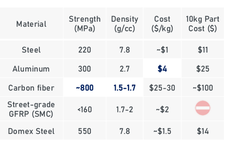 "Aluminum has two or three major problems. Number one, cost—it's typically $4 per kg versus steel at less than $1."