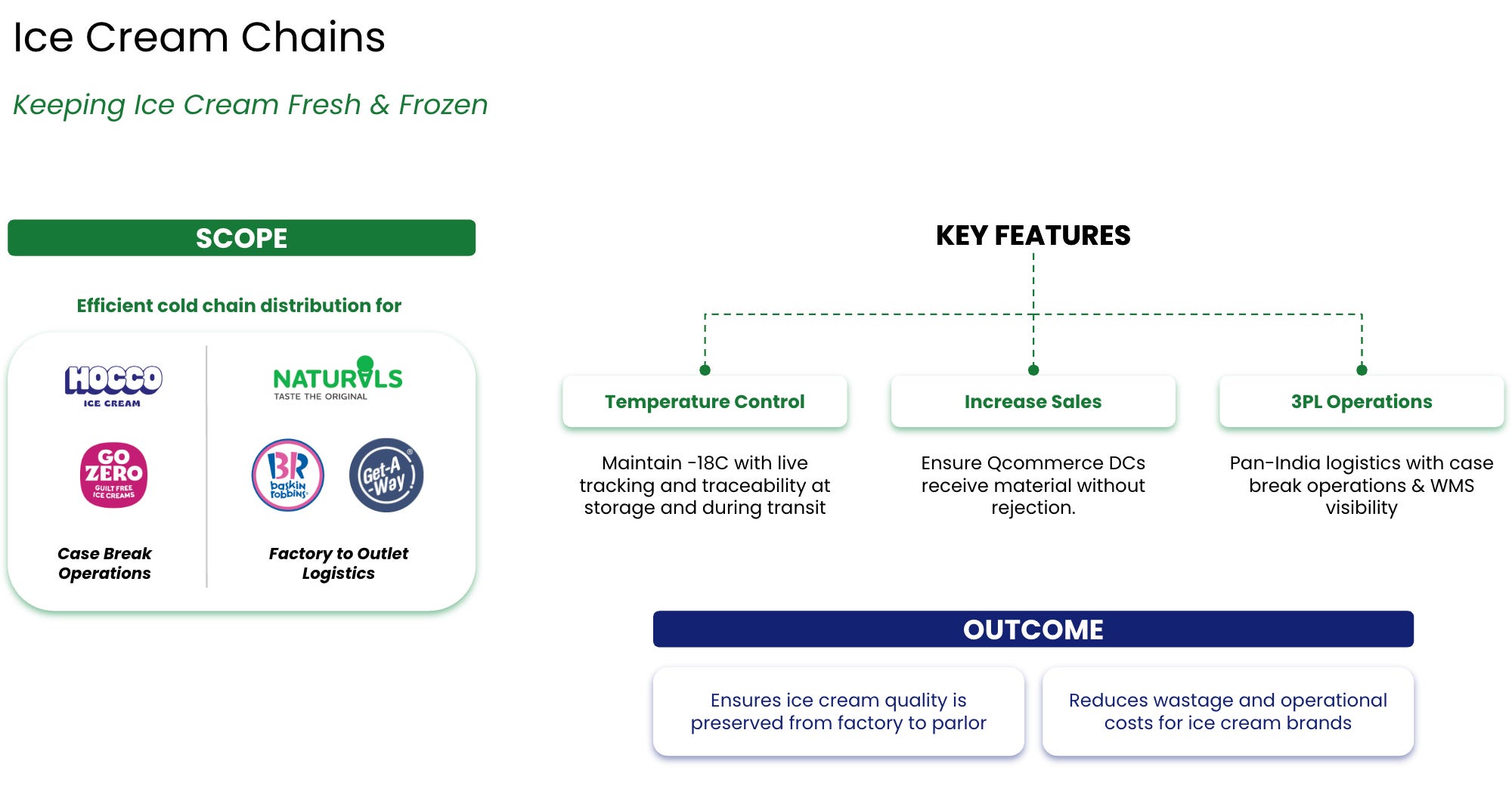 “What the big legacy players do, they will not open the case, take out 10 tubs [of ice cream]. They will send the whole case of 24 because they are used to working with very large brands. But we will say, ‘OK, we will case break. We will open the case and we'll take out 10 ice creams. We'll repackage and we'll send it,’” Mansi explains.