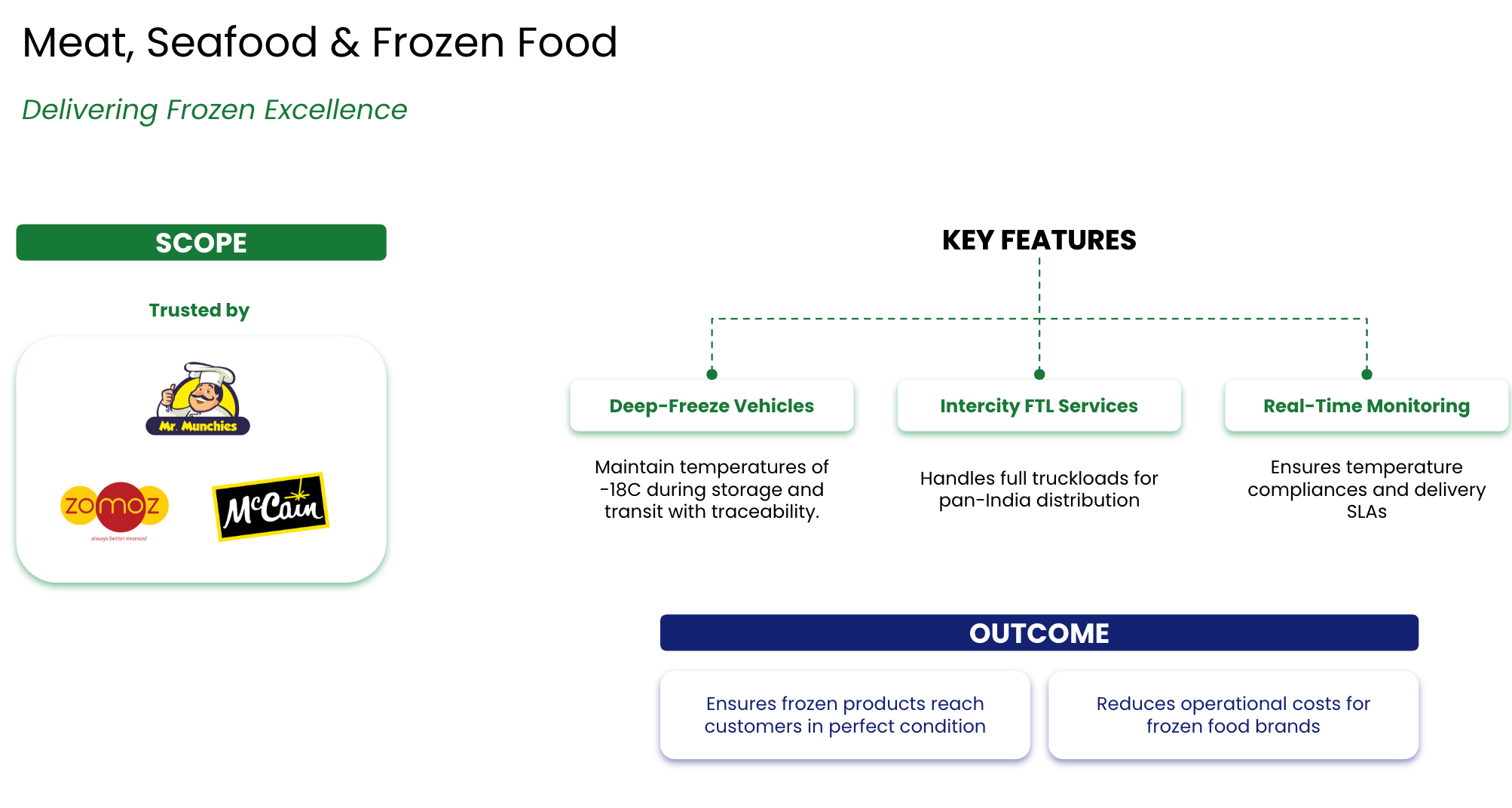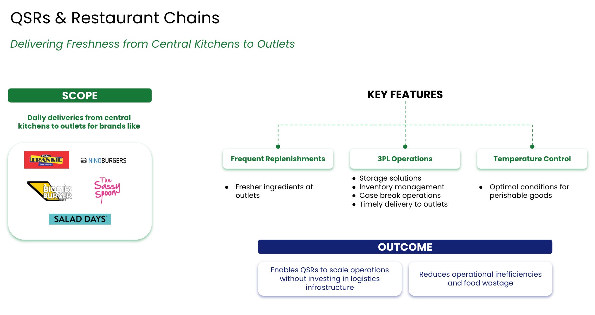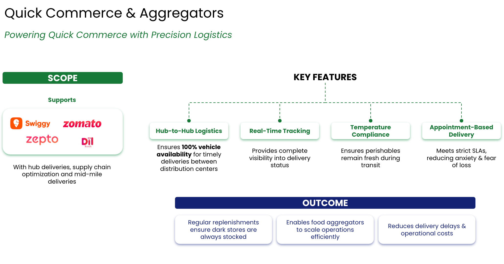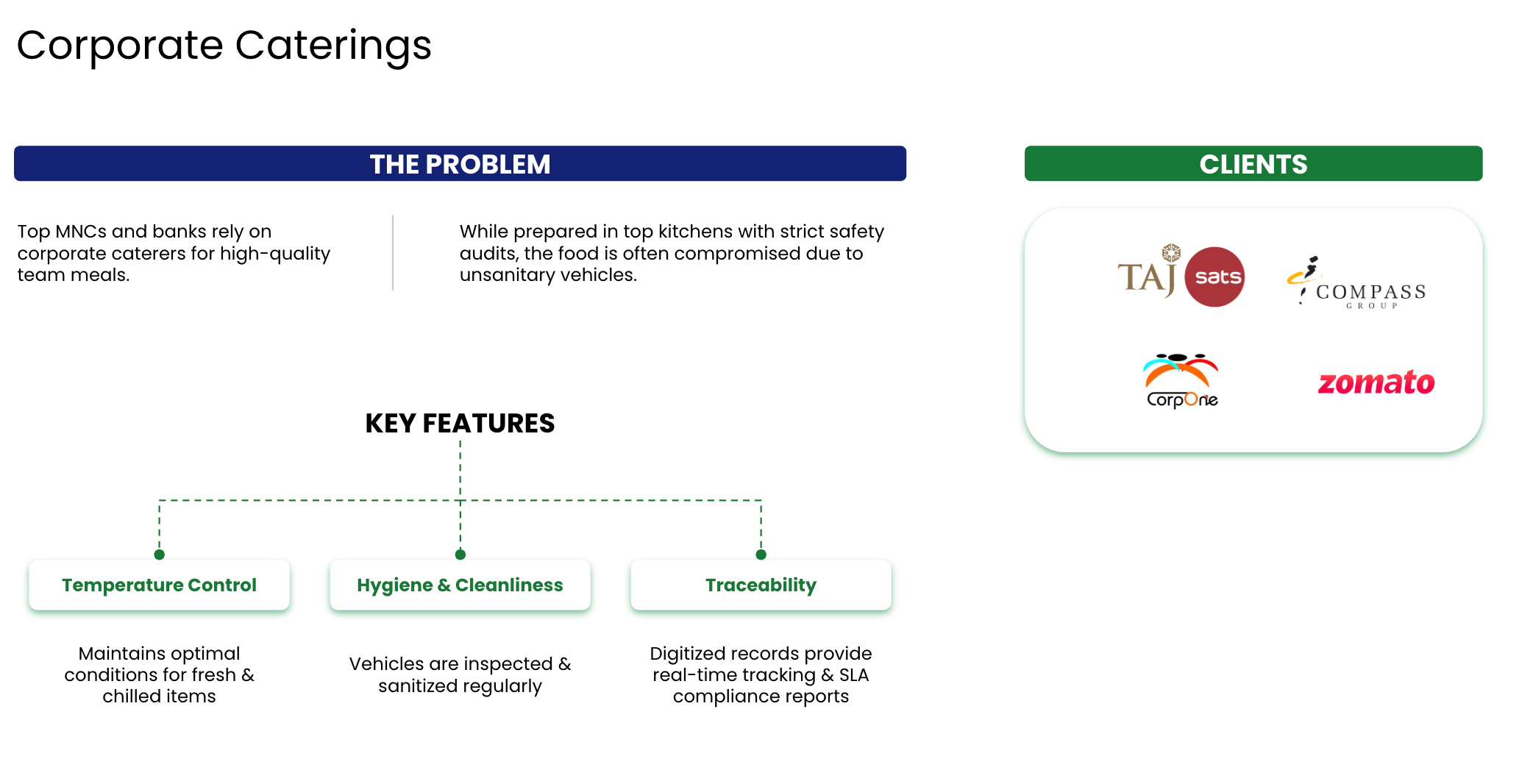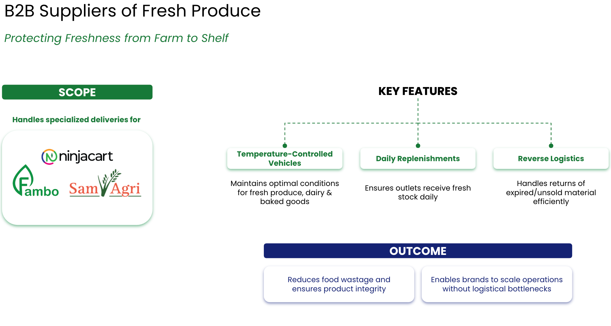 JustDeliveries solves a critical problem in India's food and beverage supply chain: the mid-mile logistics connecting central kitchens to outlets or dark stores.