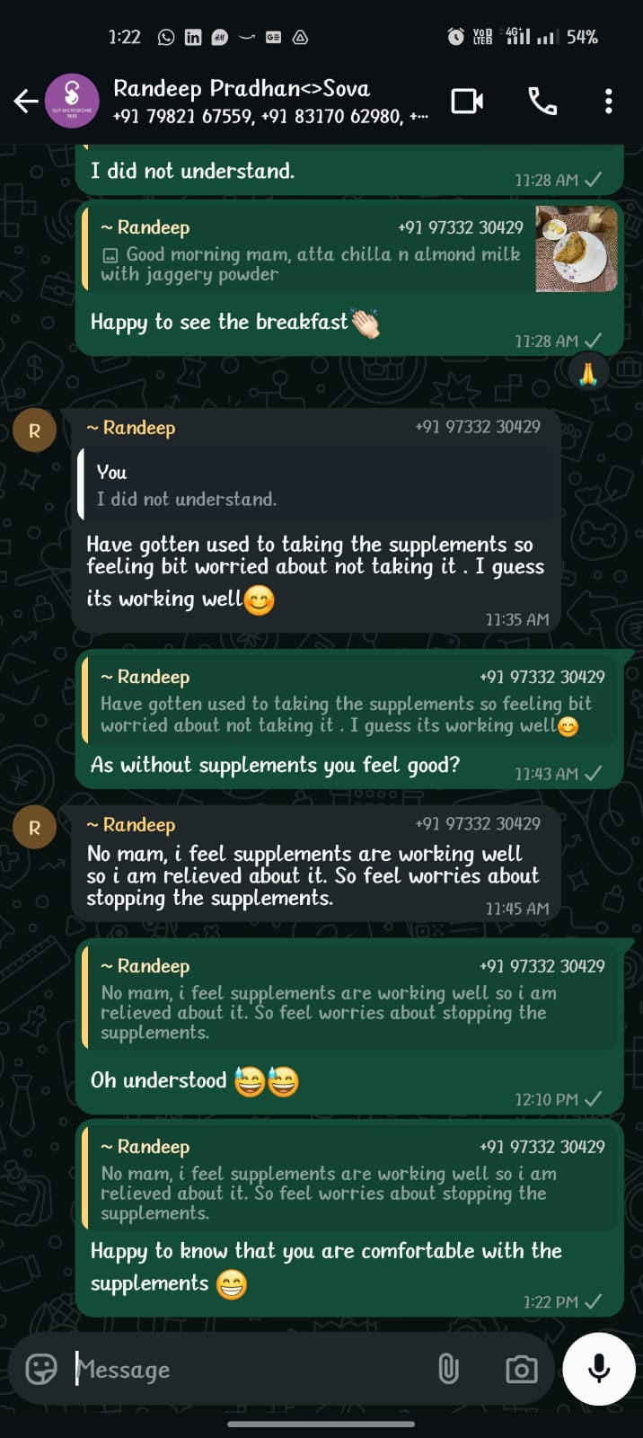 For eight months, the Sova team worked intensively with Arjun, starting with a comprehensive gut microbiome test that revealed significant bacterial imbalances. They provided him with custom-made probiotics tailored specifically to his gut profile, ongoing nutritional counseling, and constant support through WhatsApp.