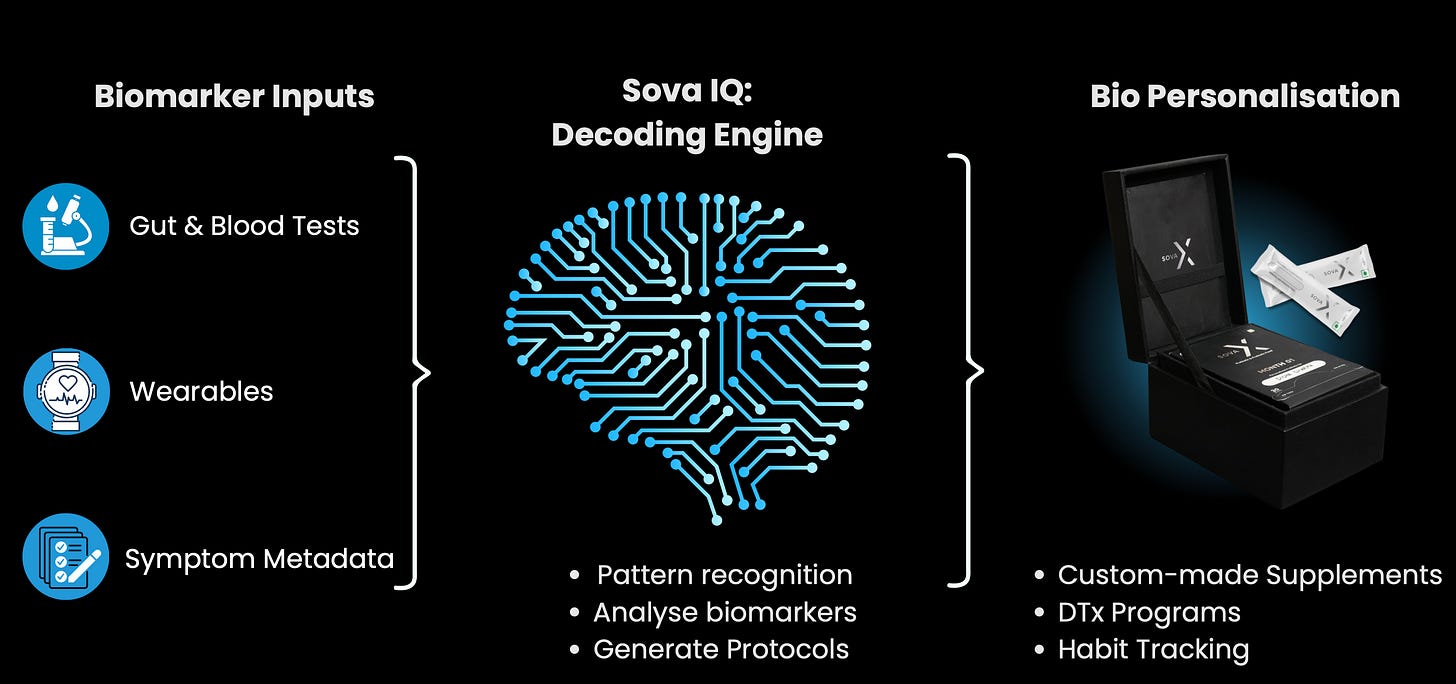 At the heart of Sova's platform lies SovaIQ, its proprietary algorithm that processes multiple data streams to generate personalized formulations.